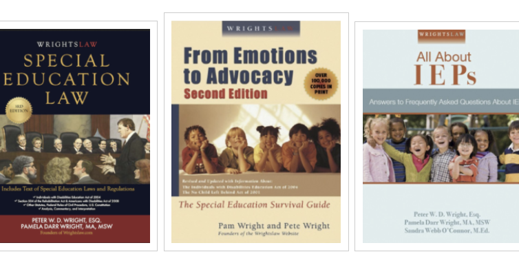 Triple Combo Contains: Wrightslaw: Special Education Law, 3rd Edition, Wrightslaw: From Emotions to Advocacy, 2nd Edition and Wrightslaw: All About IEPs books and PDF Downloads of those titles Continue Reading →